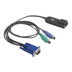 HP PS/2 Interface adapter 262588-B21 Rallonge KVM externe : 1 x réseau, RJ-45 femelle, 1 x clavier, Générique, Mini-DIN 6 broches (style PS/2) mâle, 1 x souris, Générique, Mini-DIN 6 broches (style PS/2) mâle, 1 x affichage / vidéo, VGA, HD D-Sub (HD-15) 15 broches mâle - Garantie 1 an HPE